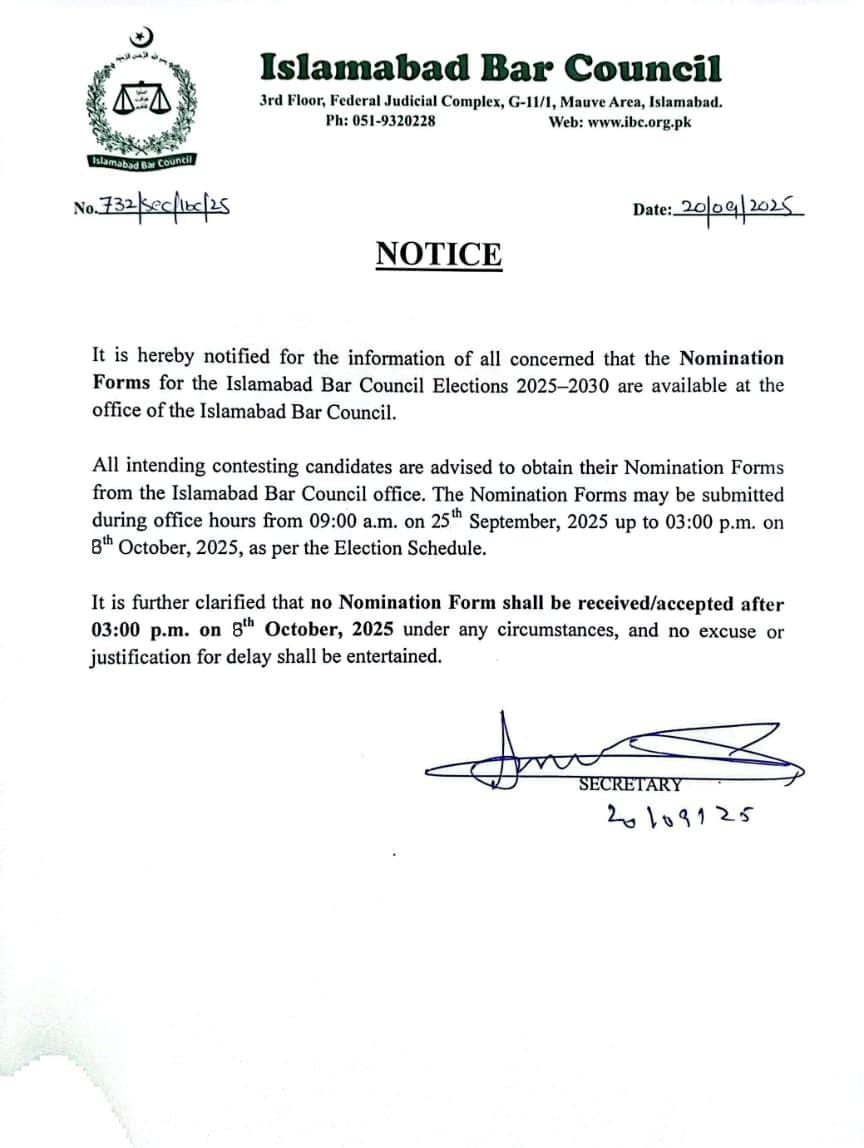 Islamabad Bar Council represents the practicing barristers in Islamabad.